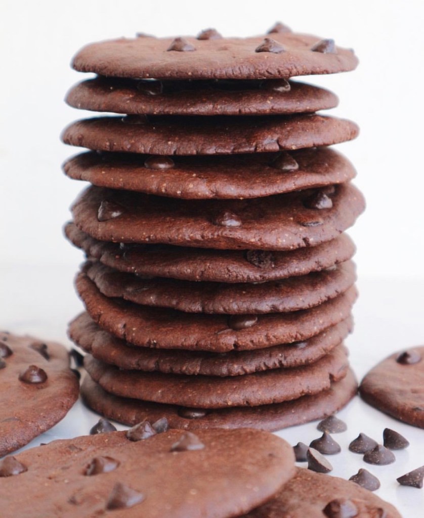 İçine hinsitan cevizi unu vedamşa çikolataları ekleyin, yoğurun. Üzerine hafifçe bastırarak yağlı kağıt serili fırın tepsisine yerleştirin.