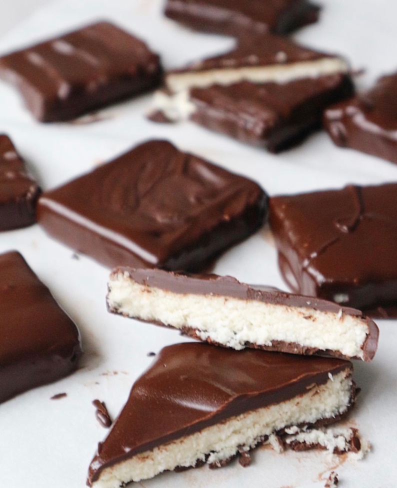 Derin dondurucudan çıkardığınız iç harcı 9 kare parçaya bölün. Ardından erittiğiniz çikolataya batırıp çatal yardımıyla yağlı kağıt serdiğiniz tabağa alın.